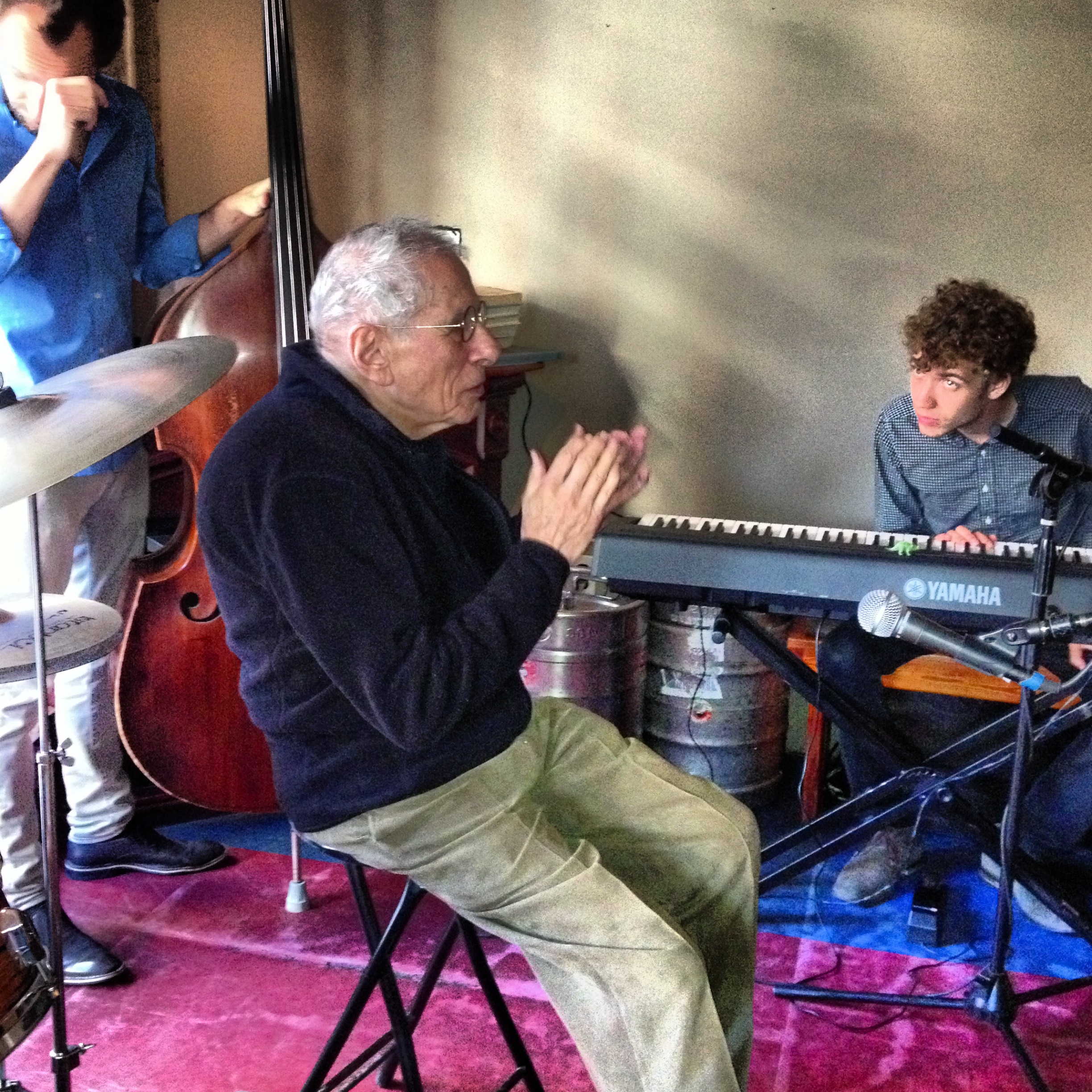 Howard always had time to listen to a young person. He’d stop everything to give an ear to their stories. He leaves his loving wife, Robin, and his children and grandchildren; and a legacy in his name at Queens College. He taught and played jazz right up until his quiet death in October. Many friends gathered at the J-Street Bar for a tribute, but the best memory for me, is shown in my photo—at his 86th birthday party last May— still vibrant, teaching, and adored by so many.