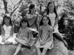 Dede with pigtails and a pack of teenaged girls at WDBC.